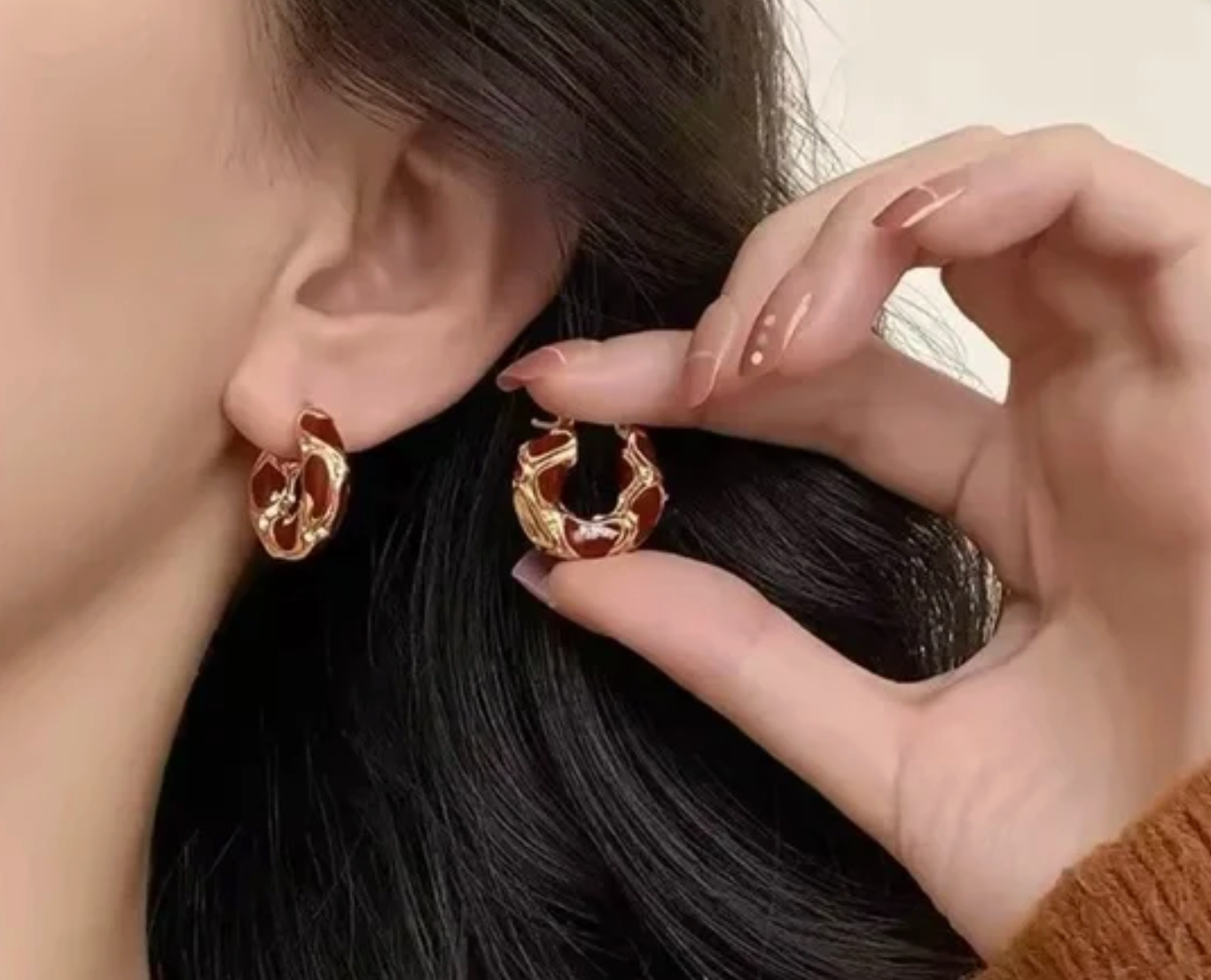 Mit einem kunstvoll gestalteten, goldfarbenen Rahmen, tiefroten Emaille-Akzenten und dezenten Kristalldetails verleiht dieses Schmuckstück jedem Look eine selbstbewusste, vom Vintage-Stil inspirierte Note. Gefertigt mit Steckern aus 925er Sterlingsilber für angenehmen Tragekomfort, auch bei empfindlichen Ohren.