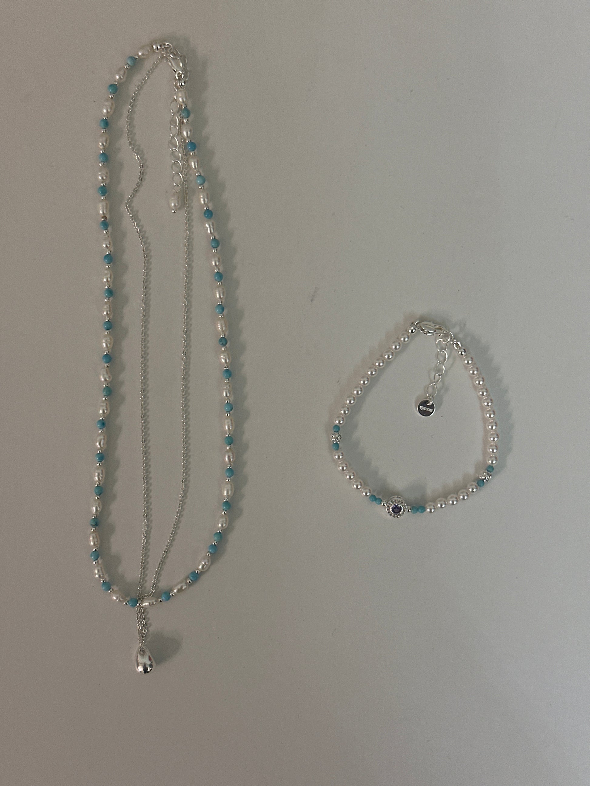 Set aus Halskette und Armband mit Süßwasserperlen und Türkis