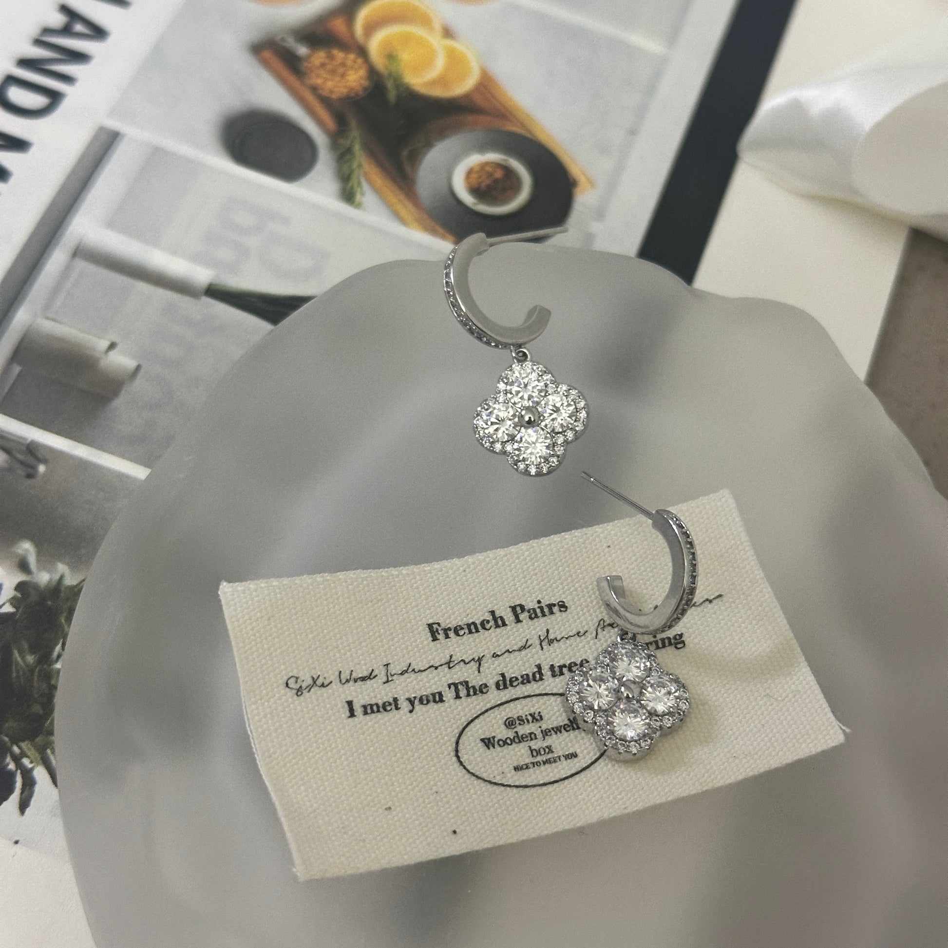 Funkelnde Kleeblatt-Ohrhänger mit 925er Silbersteckern