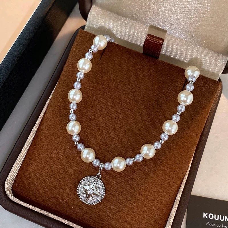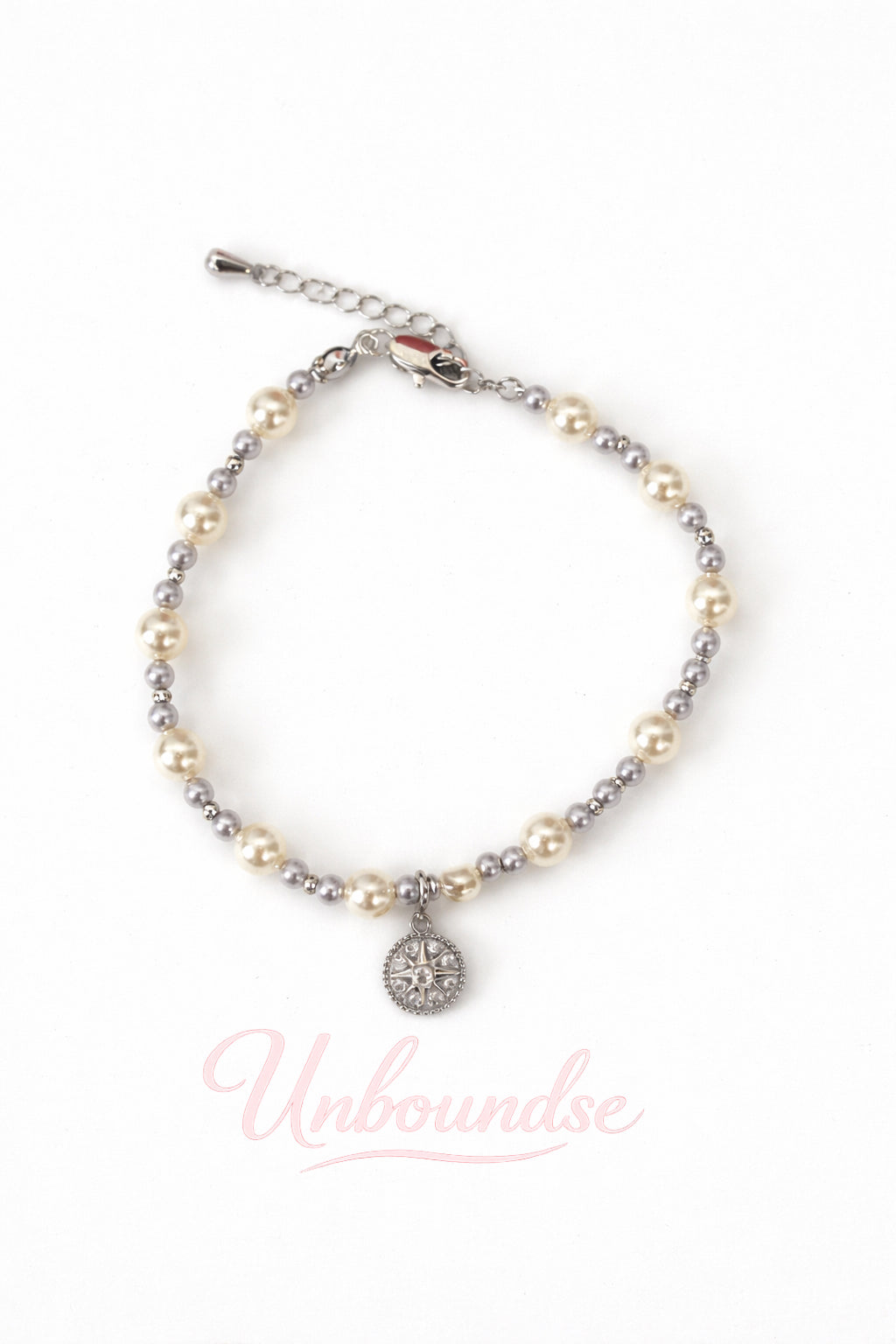 Dieses Armband vereint sanfte Perlmutttöne mit einem zarten Kompassanhänger und wirkt dadurch dezent elegant und leicht vintage. Dank der neutralen Farbpalette lässt es sich sowohl zu Alltagsoutfits als auch zu festlicheren Anlässen kombinieren, während der unaufdringliche Anhänger dem Design genau die richtige Note verleiht, ohne es zu dominieren.