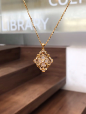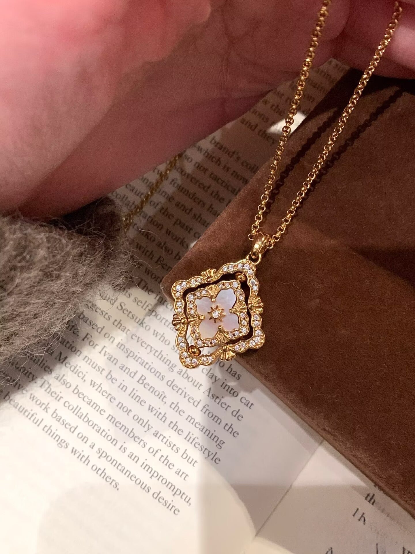 "Ethereal Spinner" Pink Mother-of-Pearl Clover Necklace – A Rotating Token of Luck