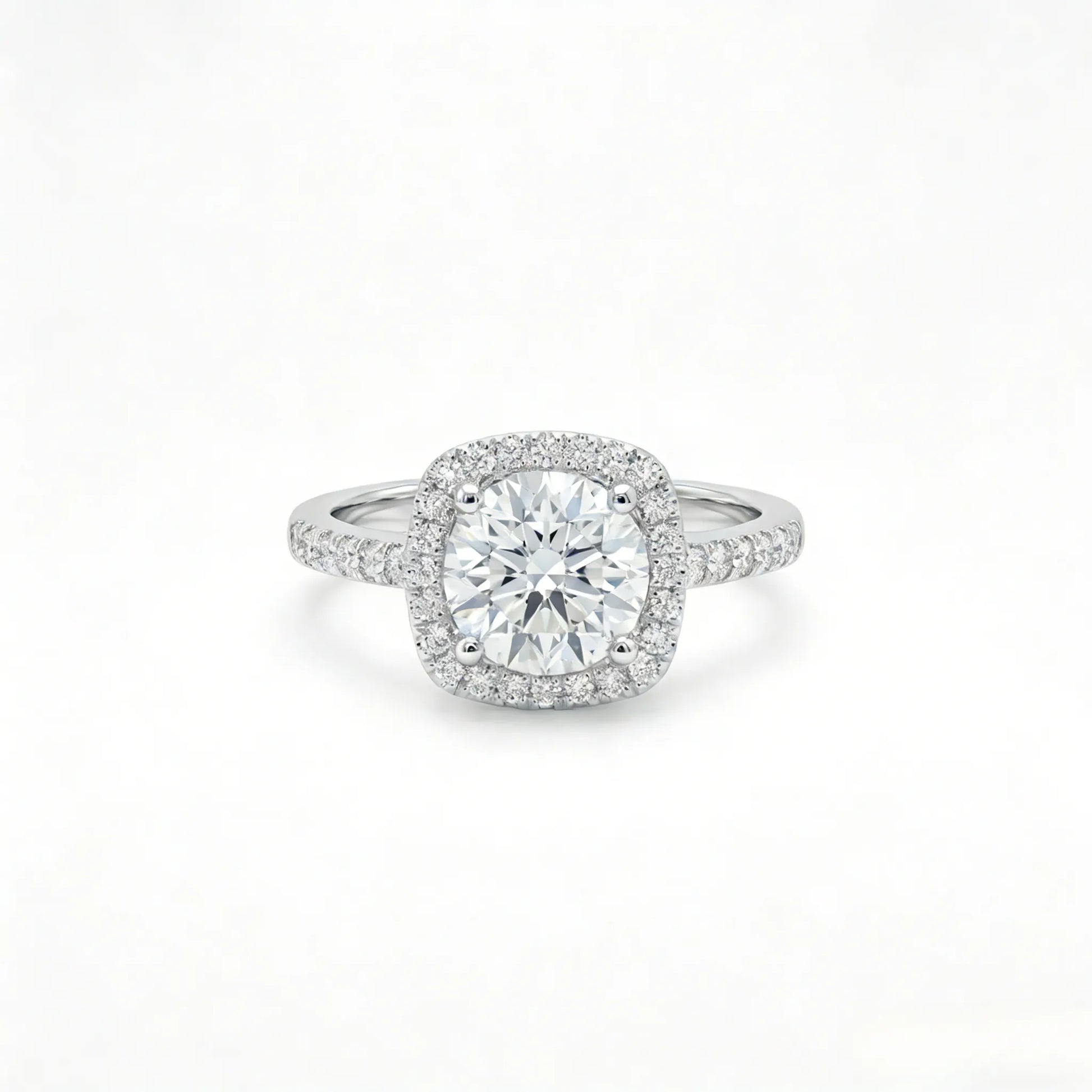 Dainty Round Cut Cushion Halo Pavé Band Ring(Adjustable Ring)